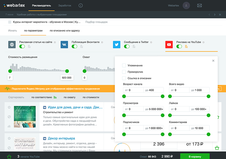 Увеличивайте охват своей публикации, просмотры видео и активность. Размещайте рекламу в тематических сообществах и каналах — это не дорого