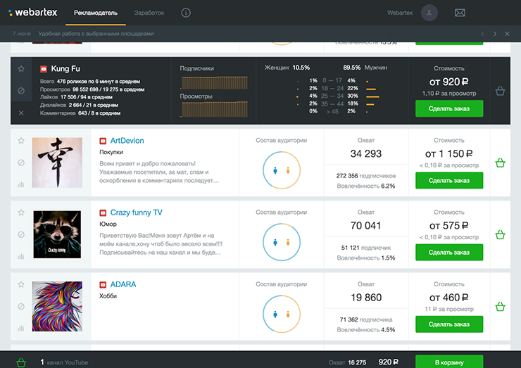 В совокупности мы работаем с большим количеством клиентов — это позволяет YouTube-блогерам стабильно получать заказы, как правило, это влияет на то, что блогер указывает более выгодную стоимость.