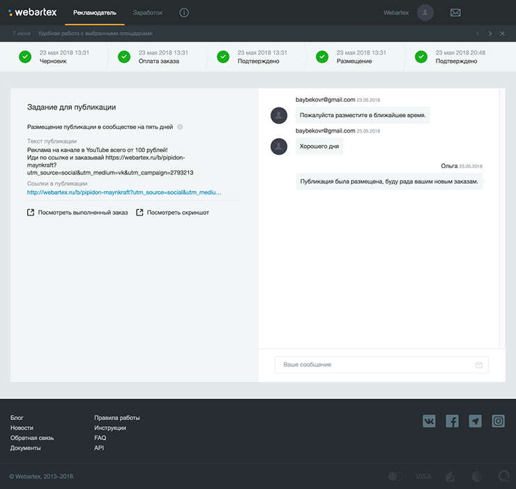 С нами вы можете не переживать о ситуации, когда YouTube-блогер получил предоплату, но не выполнил заказ! Блогер получает оплату только после подтверждения вами выполненной работы!